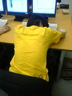 全日コースの授業も残すところあと1回。写真は激しくJavaを勉強して燃え尽きた吉良くんです。 [2005/8/4 15:06] |