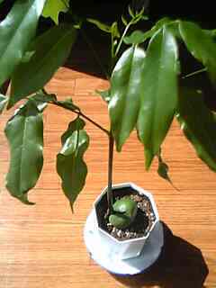 「ジャックと豆の木」という観葉植物。正式名称はブラックビーンで、高さが40メートルにもなるらしい。普段はPCの上に置いてますが、今日みたいな天気の良い日は窓際でひなたぼっこさせてます。