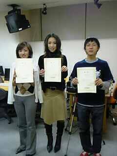 今回卒制を発表してくれた、ロミ、ユミ、キラの3名。お疲れさまでした。Javaクラス以外のギャラリーも多くて、緊張したとは思うけど、しっかり自分の言葉でプレゼン出来てたと思います。今後の活躍を期待してるぞ〜。